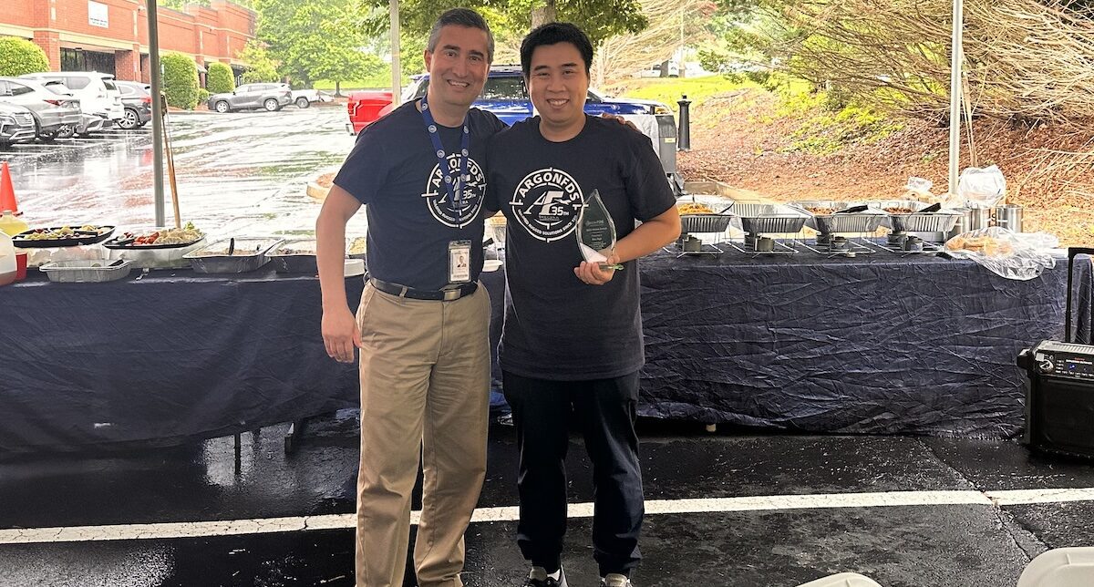 Argon recognized Bao Ngo, Senior Mechanical Engineer, with a 2025 Values Award at the company’s 35th anniversary celebration May 29. Ngo was nominated by several colleagues for his outstanding demonstration of company values through technical excellence and collaborative leadership. He was presented the award at the company’s 35th anniversary celebration on May 29 by Argon Vice President and General Manager Jaime Torres.