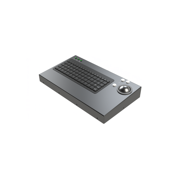 Ruggedized keyboard with trackball designed for military C5ISR consoles and vehicle-mounted command and control applications.