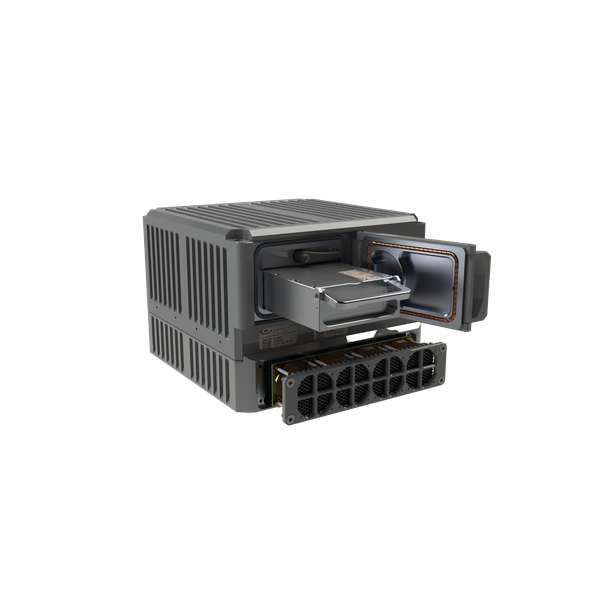 Ruggedized 5 GB/s data recorder with eight 10GbE ports, up to 80TB removable storage and IP67 ingress protection.